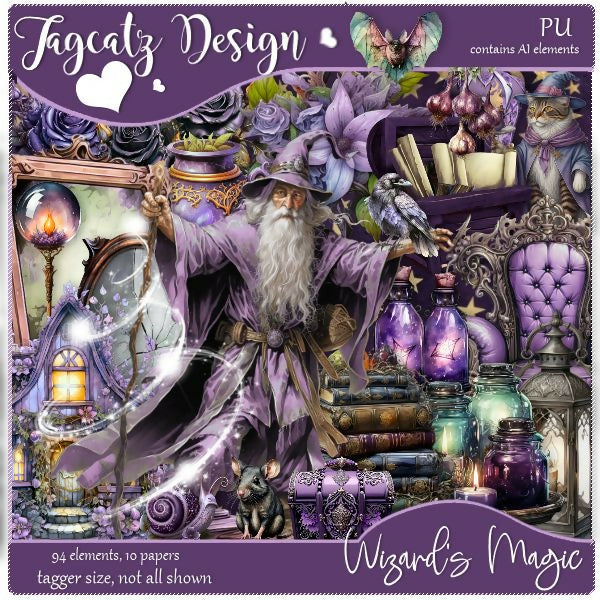 May the wizard's spells and potions make your tags the best! 94 elements and 10 matching papers. Contains AI elements. Tagger size. PU only. Not all shown.