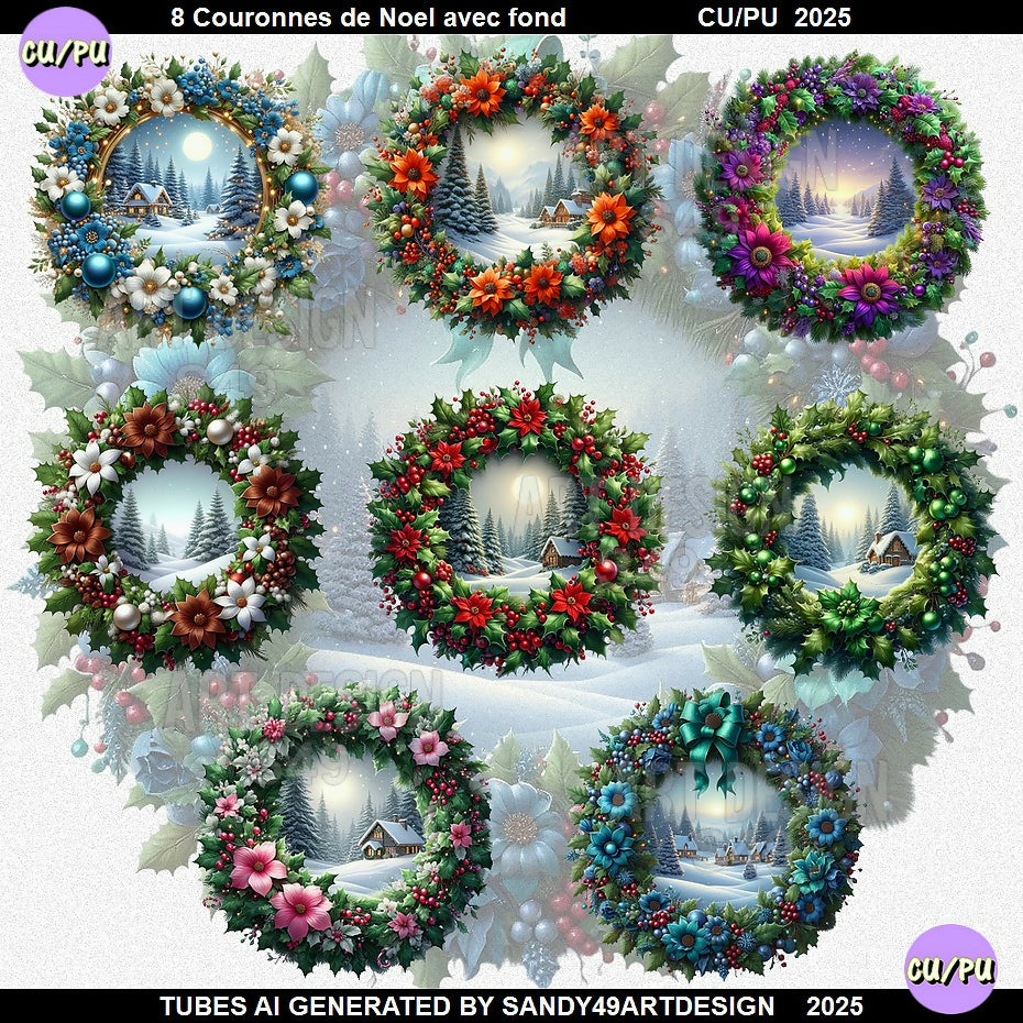 8 Couronnes de Noël avec Fond 1024 x 1024