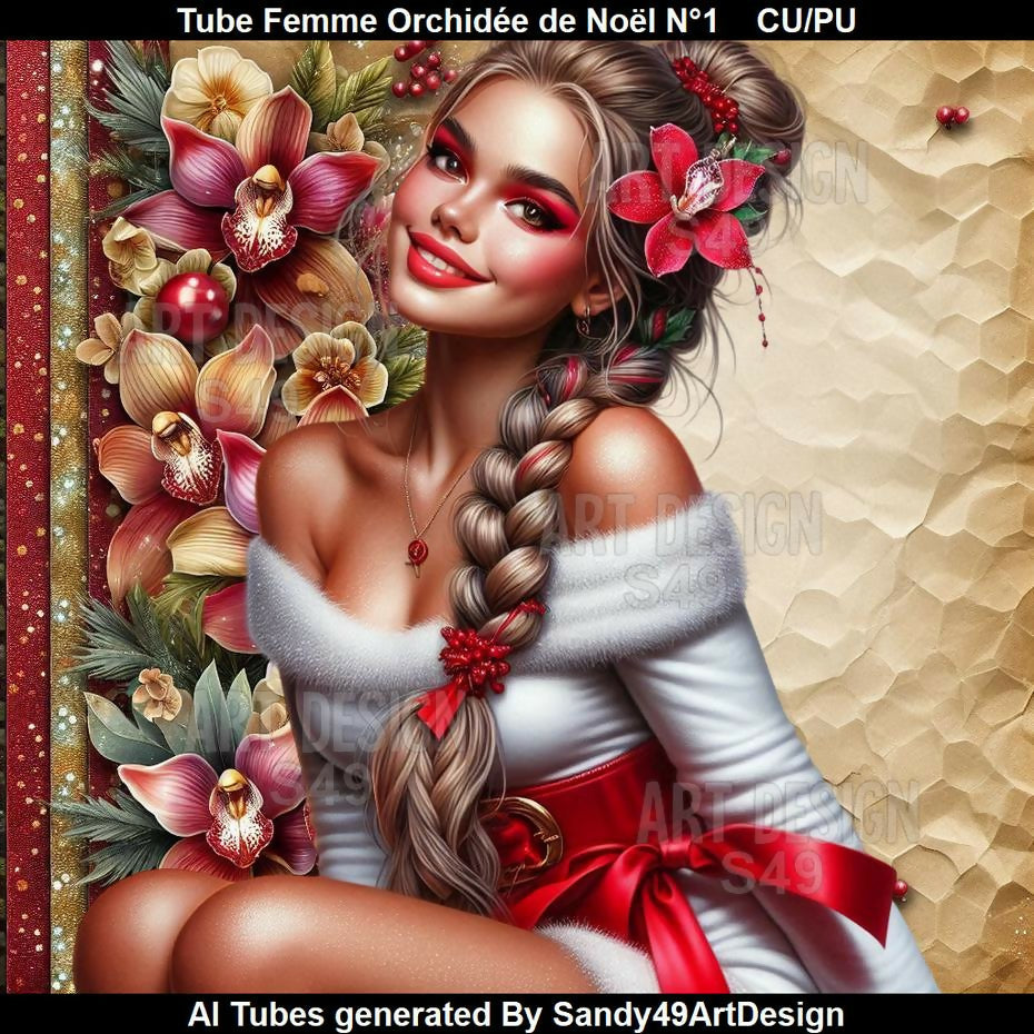 Tube Femme Orchidée de Noël N°1