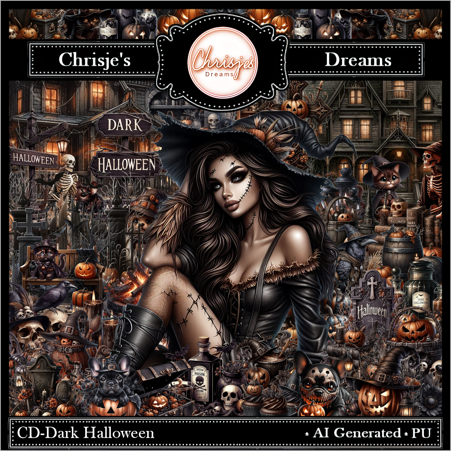 Dark Halloween is a🧙♀️🎃 halloween🎃🧙♀️ themed kit which contains 198 elements, 11 frames, 18 papers and 4 beautiful AI generated png tubes by Chrisje's Dreams