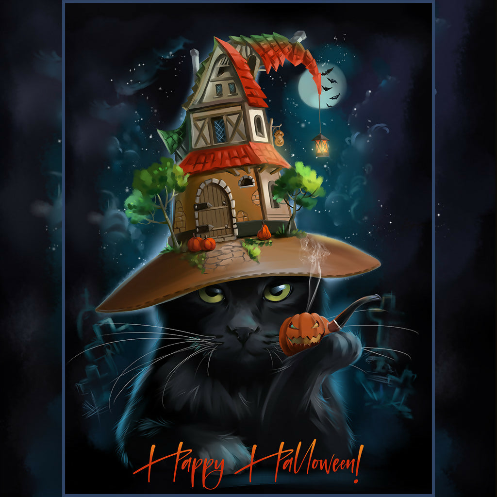 All elements of the drawing (cat, hat elements, smoking pipe, text, background) are on separate layers. You can turn off or move layers at your discretion.