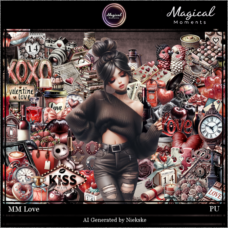 MM~Love contains 76 elements, 5 papers and 1 beautiful AI generated png tube by Niekske.