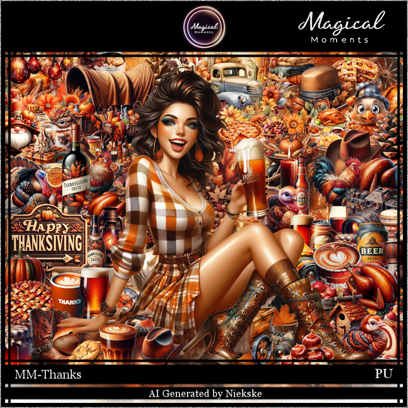 MM~Thanks contains 78 elements, 5 papers and 1 beautiful AI generated png tube by Niekske.