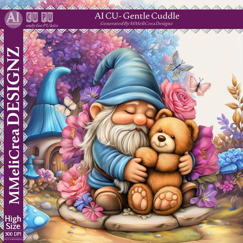 Gnome Hugging Teddy Bear 1 : 3258x4120 pixels - 300DPI