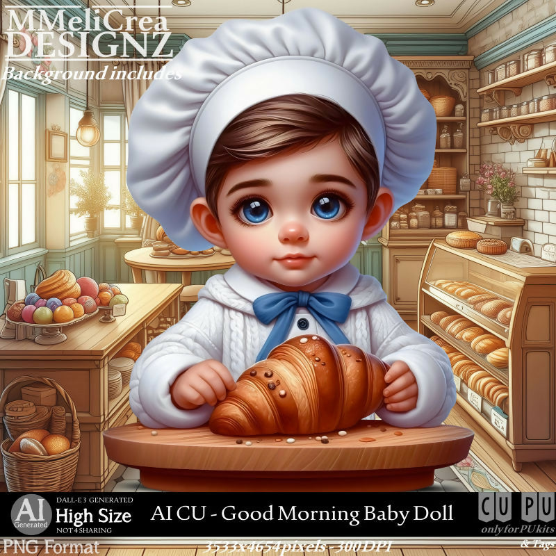 Baby Doll Boy with French Croissant : 3533x4654 pixels - 300DPI
