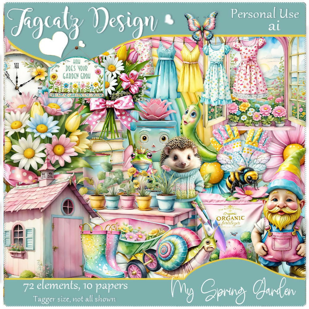 Time to get back to the garden, hang some clothes outside again, and otherwise just enjoy the season of renewal! 72 elements and 10 matching papers. AI generated by me. Tagger size, Not all shown. Personal use only.