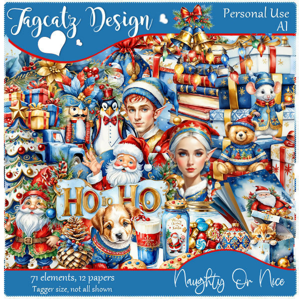 Naughty Or Nice kit with 71 elements and 12 matching papers. AI product. Tagger size. Not all shown. Personal use only.