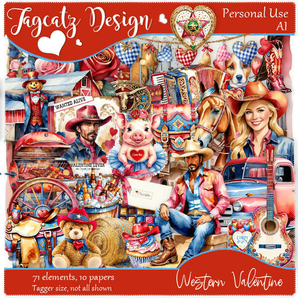Wild west Valentine kit with 71 elements and 10 matching papers. AI product. Tagger size. Not all shown.