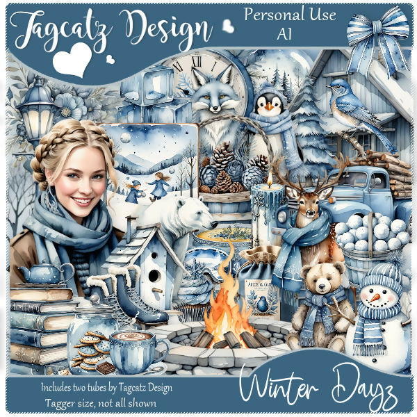 Brrrrrrr! Chilly winter vibes with this kit! 70 elements and 8 matching papers. All AI elements generated by me. Tagger size. Personal use only. Not all shown.